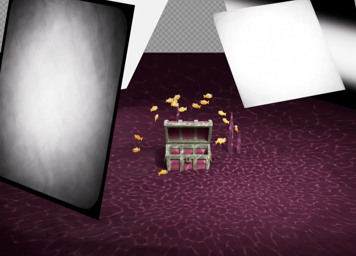 “Each paystub has a clean studio lit approach. In certain cases, special lighting is added for a stylistic effect such as the caustics in this to imply water.”